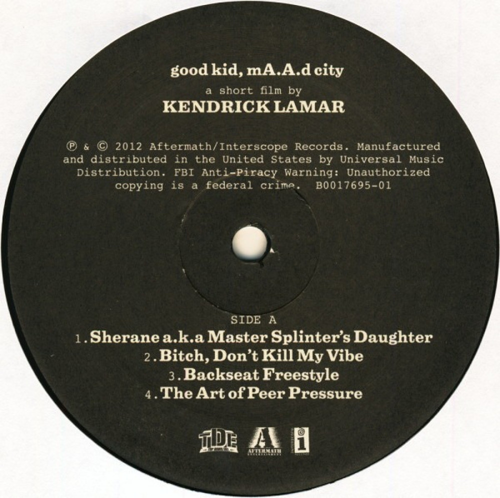 Double vinyl LP pressing. 2012 release from the Compton-based Hip Hop artist. Currently signed to Top Dawg, Aftermath and lnterscope. Lamar is a member of Hip Hop supergroup Black Hippy, along with fellow West Coast rappers and label mates Jay Rock. Schoolboy Q and Ab-Soul. He first gained major attention after being mentioned by Dr. Dre resulting in a buzz for the, then upcoming. Release of his fourth mixtape. Early in his career, Lamar amassed a large internet following, and had already worked with Snoop Dogg, Dr. Dre, Wiz Khalifa, Game, Drake, Rick Ross, Meek Mill, Talib Kweli, Lady Gaga, Kid Cudi, Busta Rhymes, E-40, Warren G, Bun B, Tech N9ne and Lil Wayne among other popular artists.