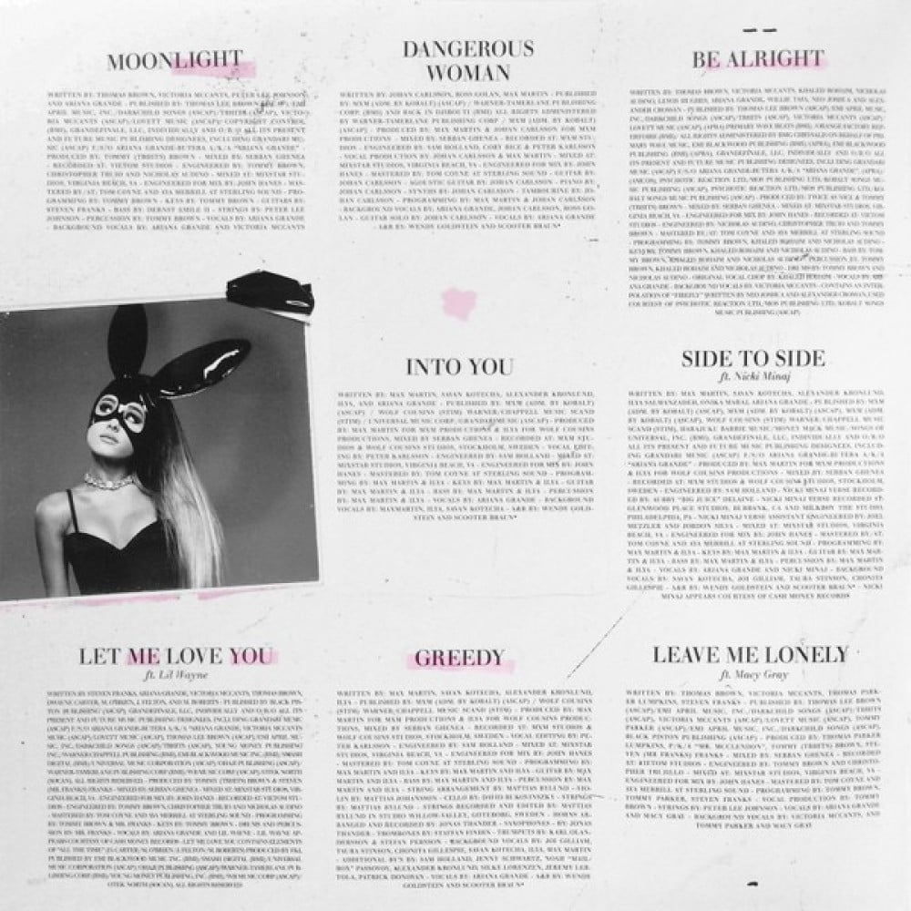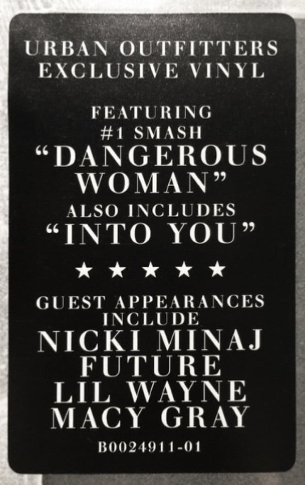 Gatefold double LP pressed on black vinyl. Dangerous Woman is the third studio album by American singer Ariana Grande. Universal. 2016.