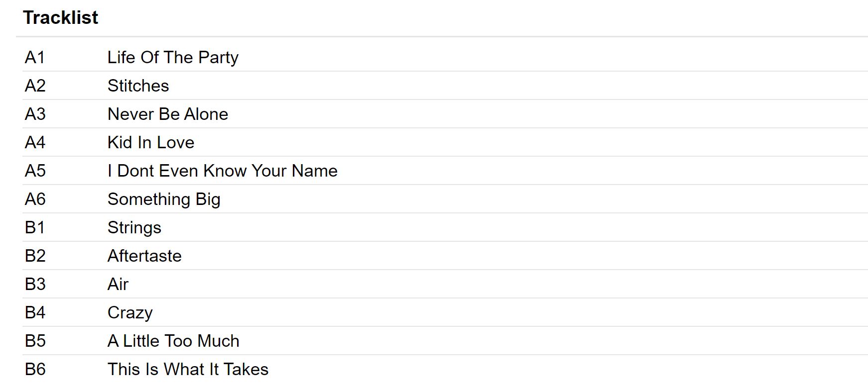 Vinyl LP pressing. 2015 release, the debut album from the Canadian singer/songwriter. Handwritten features hit singles 'Life Of The Party' and 'Something Big', in addition to new songs crafted by Mendes in writing sessions on his tour bus over the course of the past year. The album includes production by Martin Terefe (Jason Mraz's 'I'm Yours' and Train's 'Hey Soul Sister'), as well as songs with 'Life Of The Party' co-writers Ido Zmishlany and Scott Harris. The album also includes "Stitches", which was released as the album's third single. The song debuted on the Billboard Hot 100 chart of June 13, 2015, at # 89 and became his first top 10, peaking at # 4.