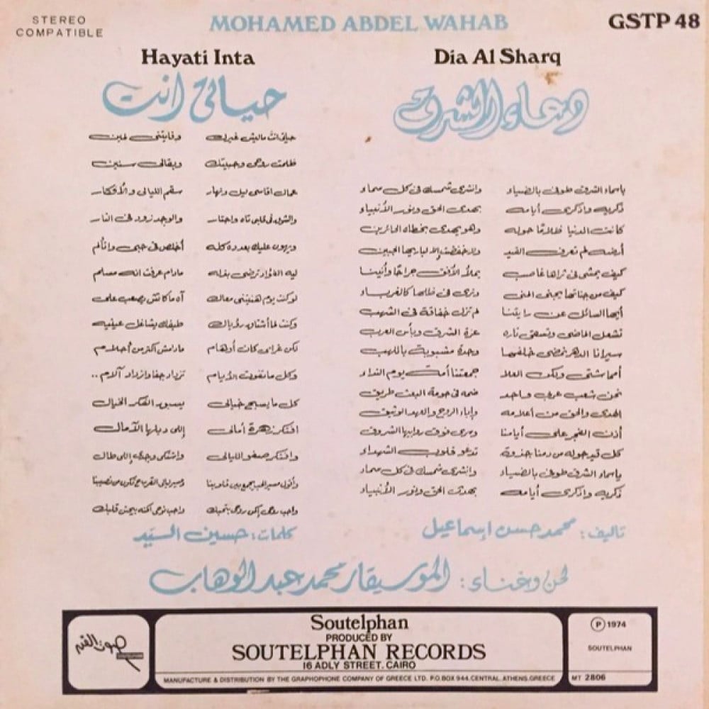 نسخة أصلية من تسجيل أستديوهات صوت الفن عام 1974م.