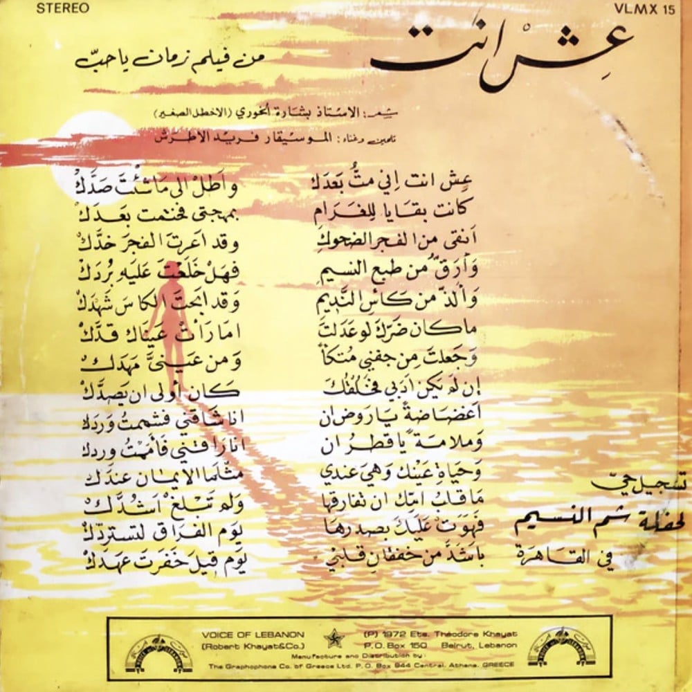 نسخة أصلية مكونة من أسطوانتين صغيرتين من تسجيل أستديوهات صوت لبنان عام 1972م.