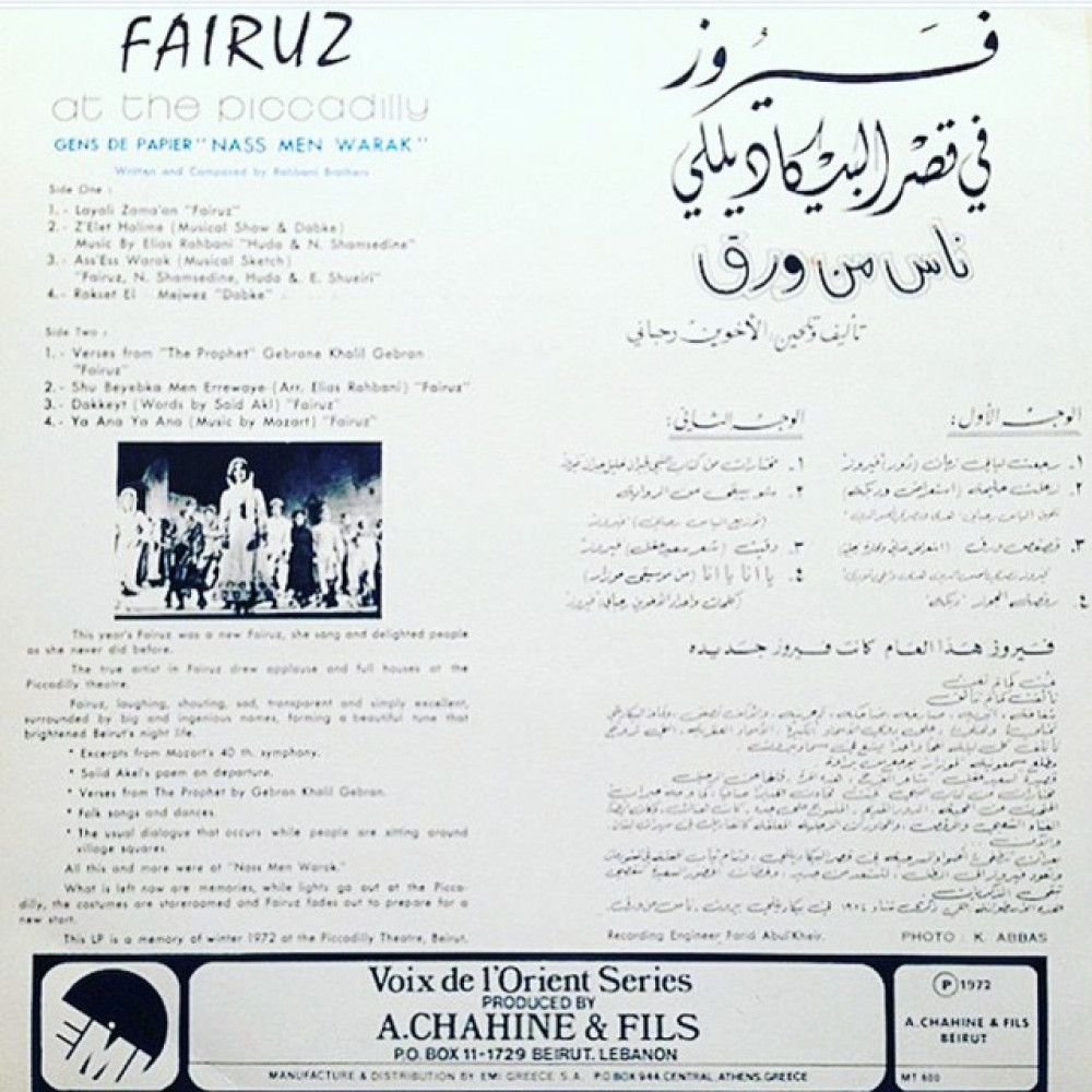 فيروز في قصر البيكاديللي - ألبوم ناس من ورق