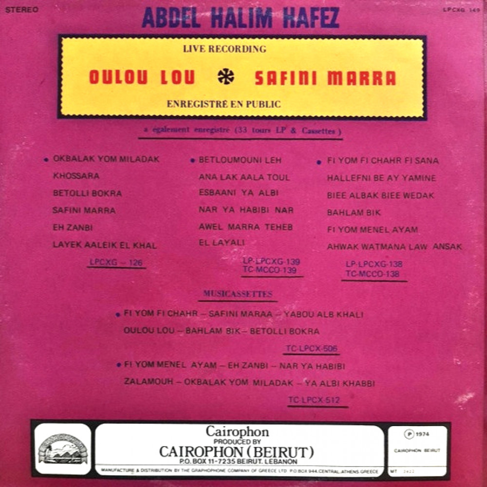نسخة أصلية من تسجيل أستديوهات كايروفون عام 1974م.