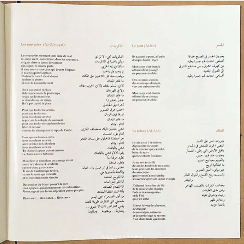 مجموعة ذهبية نادرة مكوّنة من ثلاث أسطوانات أصلية تحوي مختارات من قطع موسيقية وقصائد مغناة بصوت مارسيل خليفة.