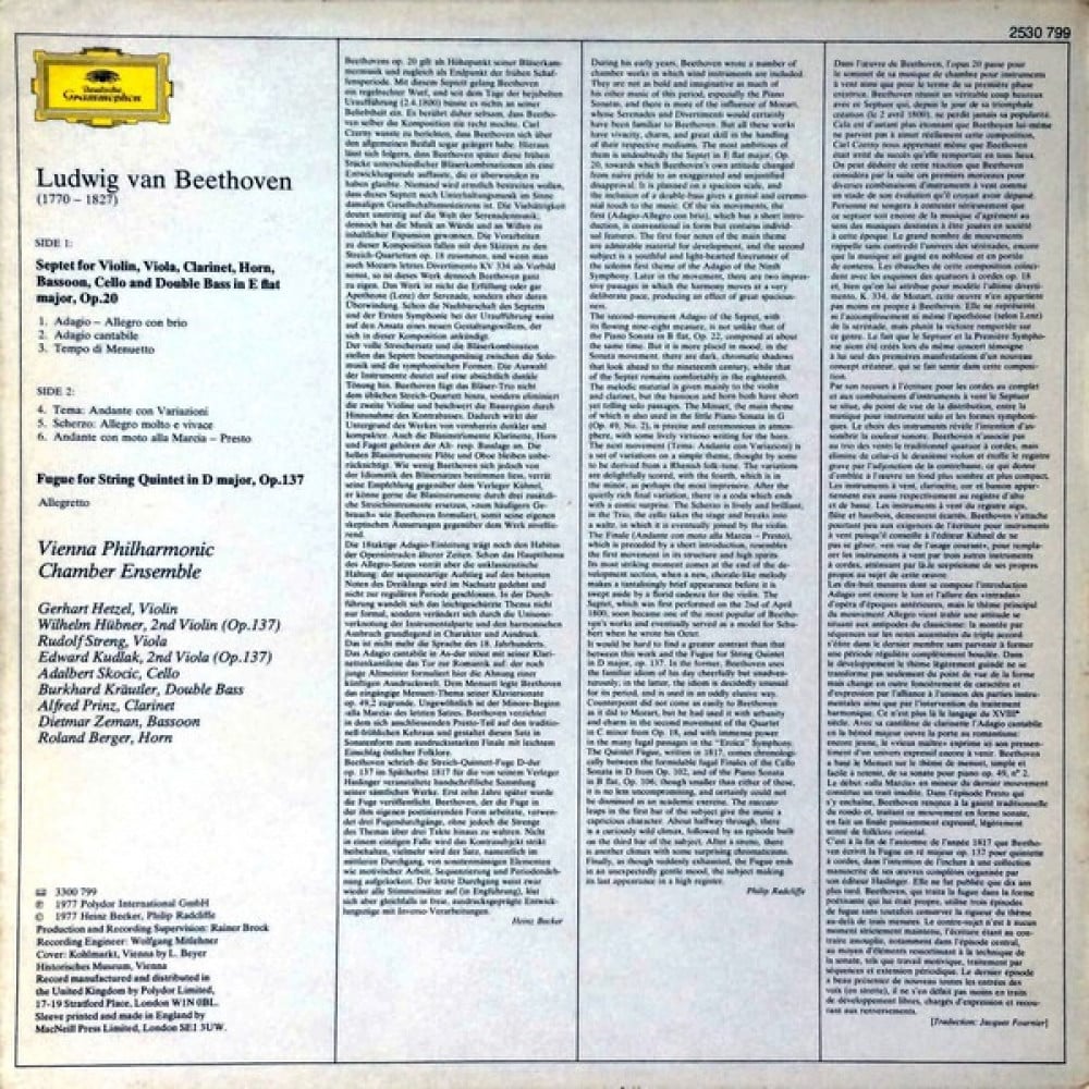 Ludwig van Beethoven - Septet, Op.20 • Fugue, Op.137