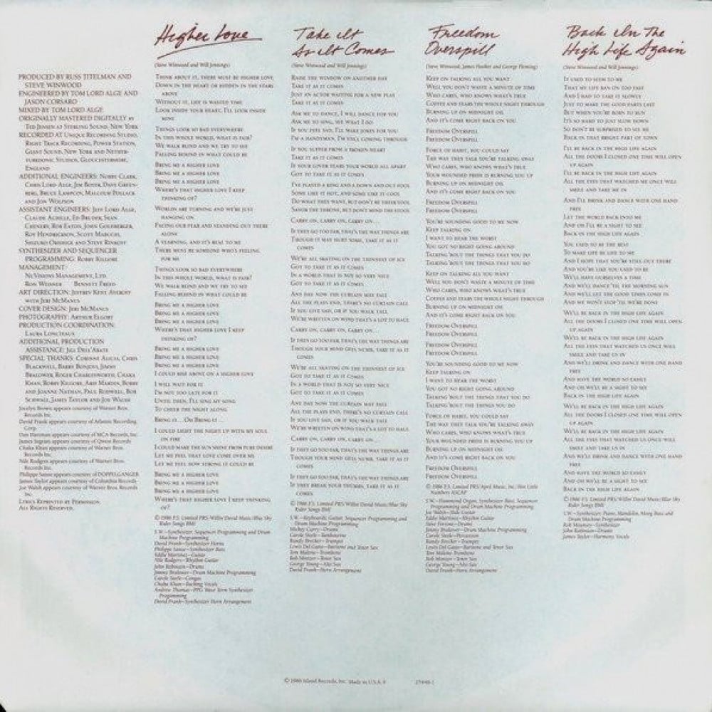 Steve Winwood - Back In The High Life - Album