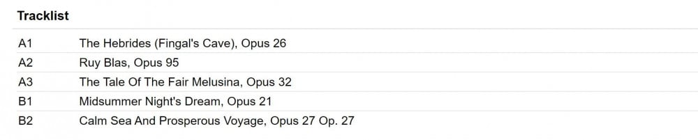 Mendelssohn - Overtures including 'A Midsummer Night's Dream' Opus 21